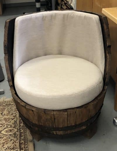 Hinta-arvion saat kuvan perusteella sähköpostilla tai käymällä verstaalla. Hinta muodostuu kalusteen korjaustarpeesta, sisusmateriaaleista ja päällikankaasta.
